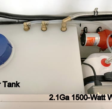 • Heating: 1500-watt water heater with a 2.1-gallon tank
