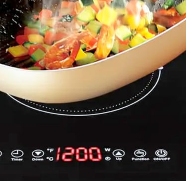 • Cooking: 1500-watt induction cooktop and microwave oven