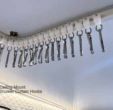 • Shower: Ceiling-mounted detachable shower curtain with integrated water drainage holes